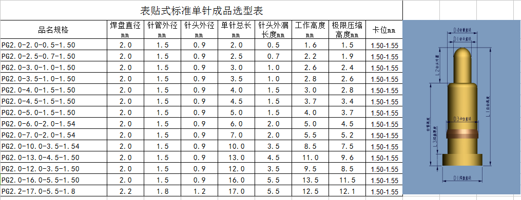 深圳POGO PIN有很多不同的種類,每次看的時候我們都要選擇適合自己產(chǎn)品的長度、直徑以及壓縮高度,那么下面一起來看看POGO PIN廠家誠宇鑫的產(chǎn)品規(guī)格有那些: